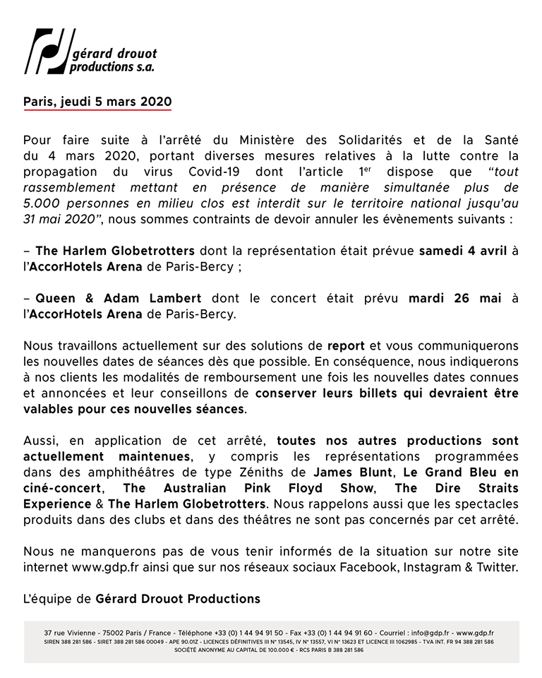 Queen + Adam Lambert @ Paris ***** Annulé ***** Reporté le 26 mai 2021